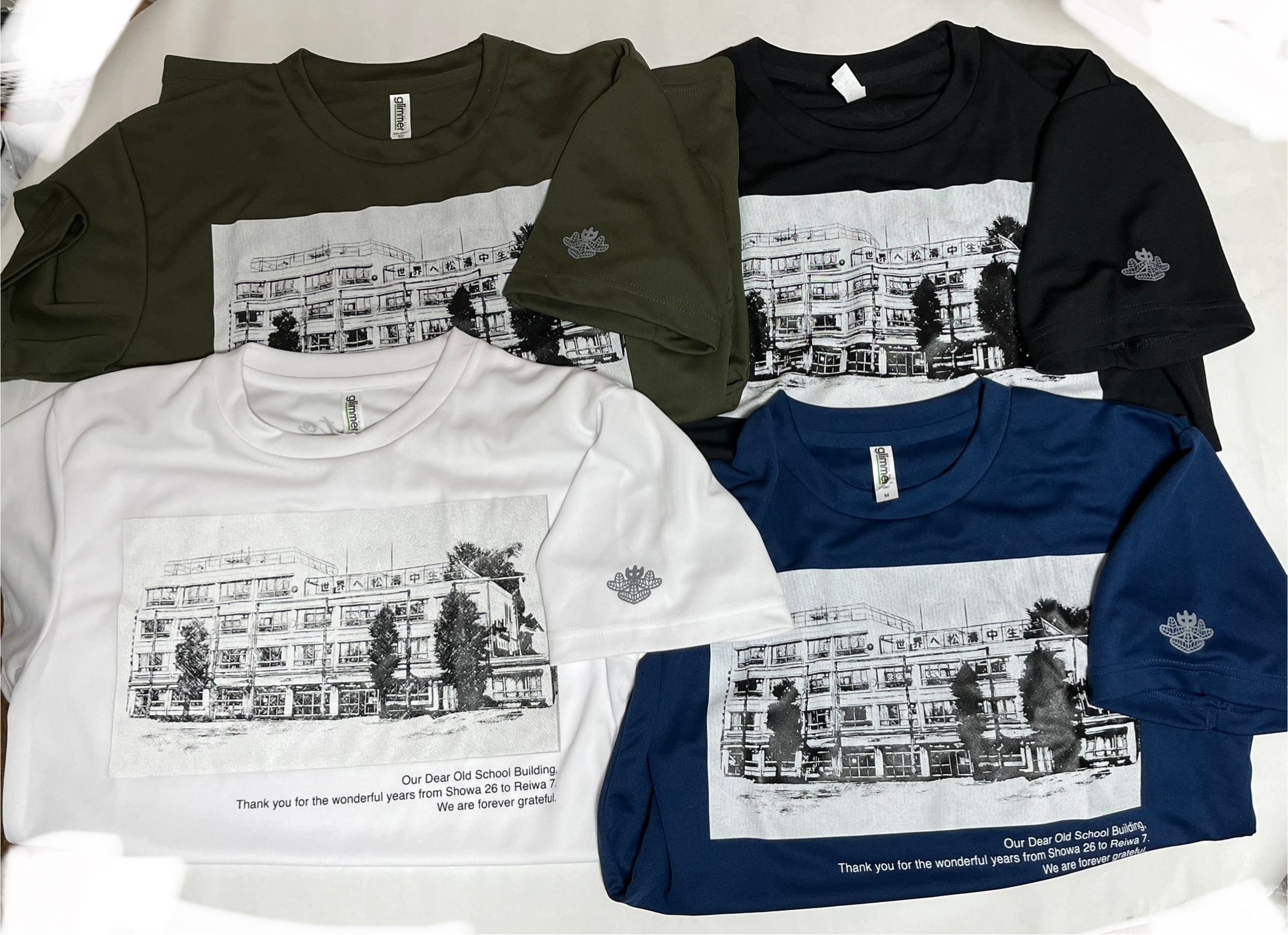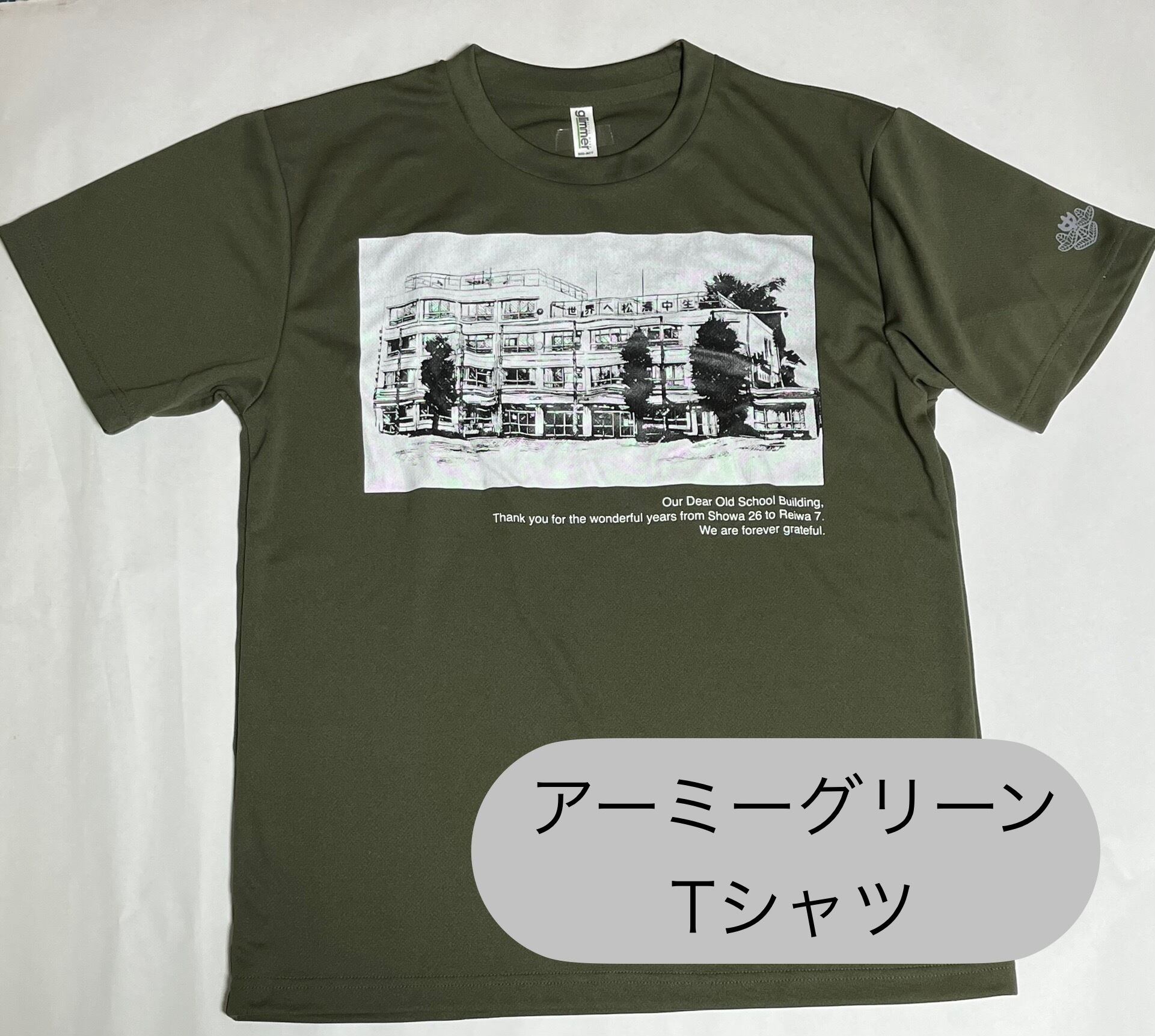 校舎建て替えの記念Tシャツです。